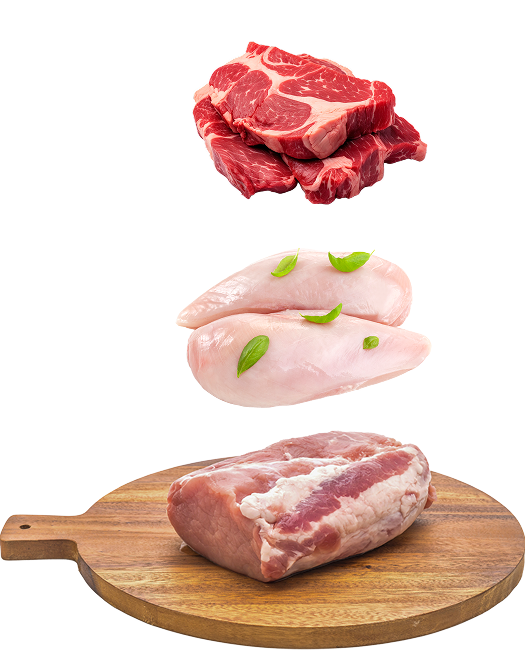 Selecciona de nuestra variedad de más de quince ingredientes naturales, incluyendo diferentes tipos de proteínas (carnes), vísceras (vitaminas y minerales), huesos carnosos (calcio y hierro), verduras y frutas. Nosotros nos encargamos de equilibrar la fórmula según los requerimientos nutricionales específicos de tu mascota.